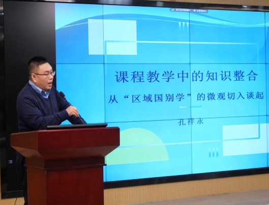 十大体育网站孔祥永副教授围绕“课程教学中的知识整合——从‘区域国别学’的微观切入谈起”发言,以教学中的语言实例为切入口,呈现如何在英语课程教学中帮助员工进行知识整合。英语师范专业陈柯延、朝鲜语专业王梓,分别就学习中开展知识整合活动的方法和体会进行交流汇报。