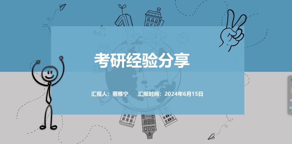 蔡雅宁同学详细地为大家介绍了筛选信息方面应注意的细节,备考期间应该关注的重要时间节点、各科备考的学习资料与阶段安排,强调在考试前进行模拟考试。同时,蔡雅宁同学还提醒保持学习的“前沿性”,了解老师的研究方向,重视复试的准备,努力克服畏难情绪,坚持到最后。
