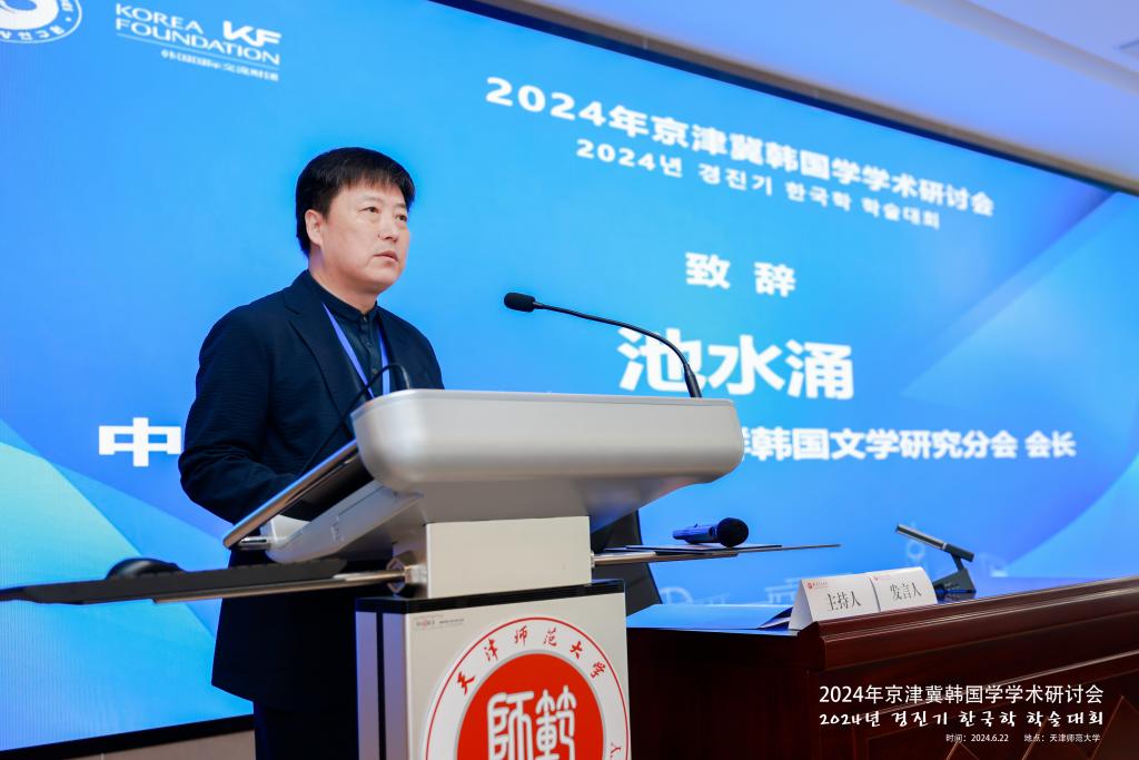 随后,中国外国文学学会朝鲜韩国文学研究分会池水涌会长发表了致辞,他强调韩国学是包罗万象的一门综合性学科,涵盖了朝鲜半岛诸多领域。人工智能化时代,世界正经历着诸多挑战和重大变革,外语专业也正经历着前所未有的阵痛期,因而更应积极顺势而为,积极应对时代大变革,寻找新的发展机遇。这种变革必然会对中国韩国学注入新动力和新思路,因而在这一节点,本次会议的召开无疑对学界同仁共同探索创新发展之路,不仅显得尤为重要,也如及时雨一般恰逢其时。