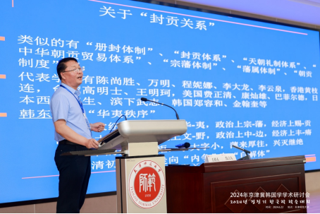 本次研讨会聘请了延边大学金哲俊教授、华中师范大学池水涌教授和十大体育网站王臻教授分别做了语言、文学、文化领域的主旨报告。这三位专家分别以题为“东亚汉籍文献整理与研究”、“AI时代韩国学跨学科教学与研究”,以及“朝鲜王朝与明清封贡关系变迁中角色认同的转变及重建”等议题发表了精彩演讲,为参会人员呈现了三场高端学术盛宴。