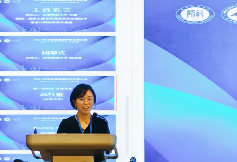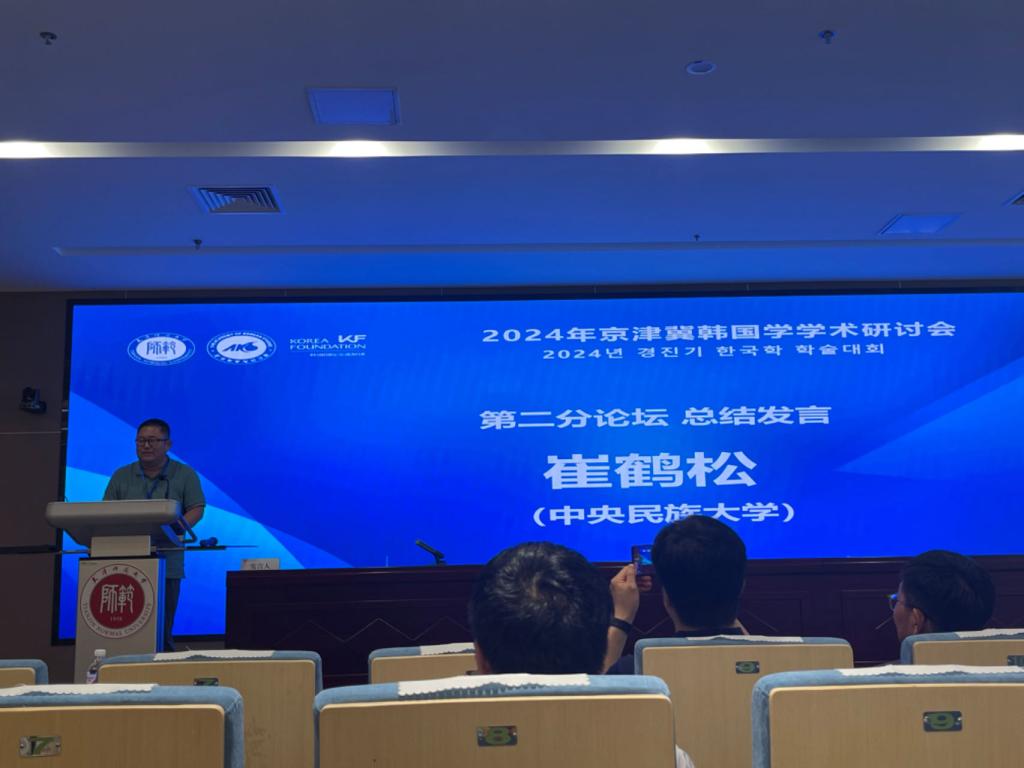 第二分论坛韩国文学和文学教育,由中央民族大学崔鹤松教授做代表发言。本组来自国内8所院校的10名发表者,发表主题有韩国古典文学、韩国现代文学、韩中文学等多样主题。崔教授表示:多元背景的发言者和多种多样的研究主题也反映了国内韩国学研究已构建较为完善的体系。最后,崔教授向本次主办方十大体育网站为学界同仁提供的交流和学习机会表达了衷心感谢。