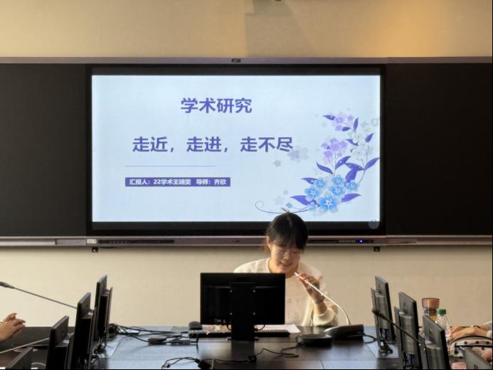本次论坛共有两个专题报告。校研究生创新项目主持人、2022级文化专业研究生王靖雯同学率先登场。她结合自己在专业学习、文献阅读与管理、论文准备与撰写以及保持身心健康等方面的宝贵经历,与大家慷慨分享相关经验。