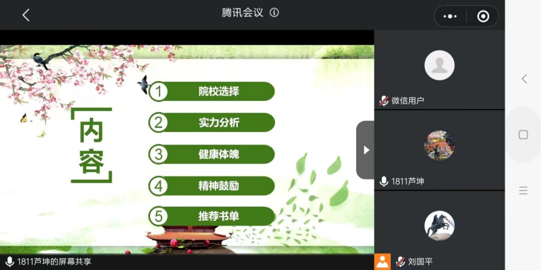 分享会伊始,刘国平老师对即将开启硕士研究生生涯的十一位同学表示了祝贺,并对他们能够牺牲个人宝贵时间来做经验分享表达了感谢。