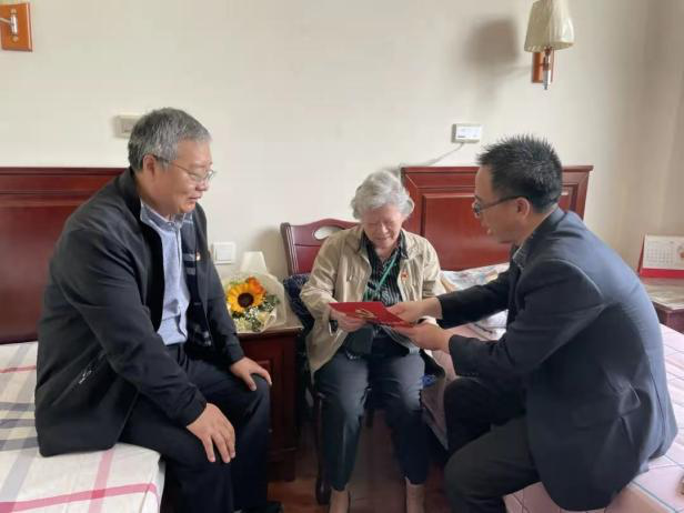 为庆祝中国共产党成立100周年,大力弘扬党的光荣传统和优良作风,充分体现公司党组织对离退休老党员的关心和关怀,为老党员送学上门,同时聆听老党员讲党史、新中国史。5月12日上午9:00,公司党委书记张维和、副经理云希栓,教学办副主任兼组织员张琨老师,学工办宋倩老师、陈乾坤老师组成慰问组,走访慰问退休老党员姚淑英老师,传递党组织的关怀,并聆听老党员讲述党史故事。公司5名员工党员代表参与其中。