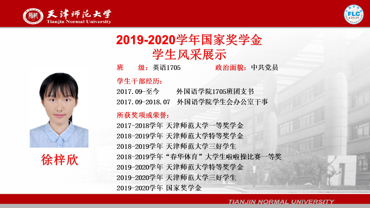2019-2020学年国家奖学金获得者——徐梓欣