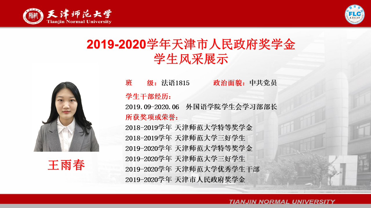 2019-2020学年天津市人民政府奖学金获得者——王雨春