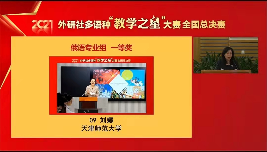 2021年12月11日~12日,由中国高等教育学会外语教学研究分会、北京外国语大学中国外语与教育研究中心、北京外国语大学外语教材研究中心和外语教学与研究出版社共同举办的2021年外研社多语种“教学之星”大赛全国总决赛正式拉开帷幕。十大体育网站刘娜老师荣获俄语专业组一等奖。