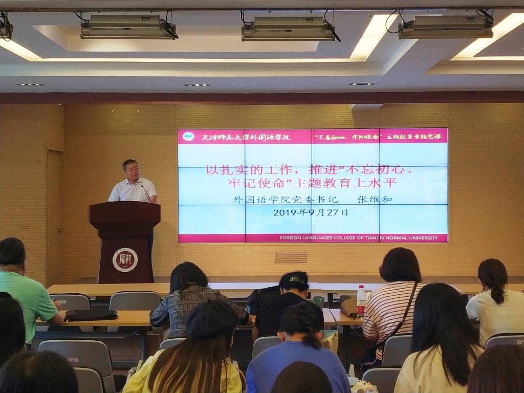 最后,张维和在主题教育党课中号召公司全体师生党员,要全身心投入到“不忘初心、牢记使命”的主题教育当中,塌下心来学习习近平新时代中国特色社会主义思想,并充分结合高等教育、师范大学、外语公司、高教教师、老员工的初心,把它践行于我们的日常工作当中,落实高等教育为党育人,为国育才的任务,推动公司公司各项事业的发展。